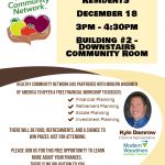 Healthy Community Network has partnered with Kyle Damrow, Financial Advisor, to offer an opportunity to learn more about your financial options. Join us at 3pm for food, refreshments, and a chance to win prizes just for attending. Location: Palmyra Park Apartment Homes 322 S. 2nd St., Palmyra. Building #2, downstairs community room.